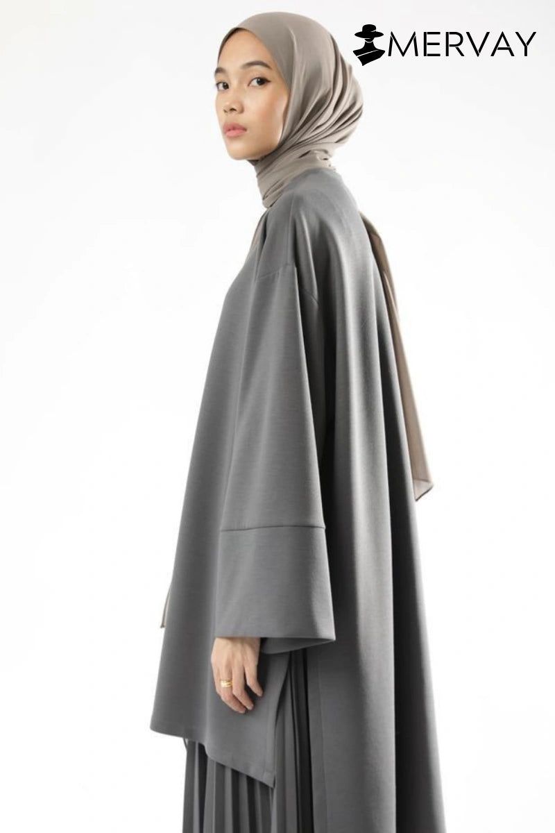 Découvrez l'élégante collection MERVAY, composée d'une veste ample à manches larges et d'une jupe plissée assortie, déclinée dans des tons bordeaux foncé, marron foncé, marron clair et blanc. Alliant élégance et confort, elle est parfaite pour un look moderne et minimaliste. Pour un look à la fois élégant et confortable.