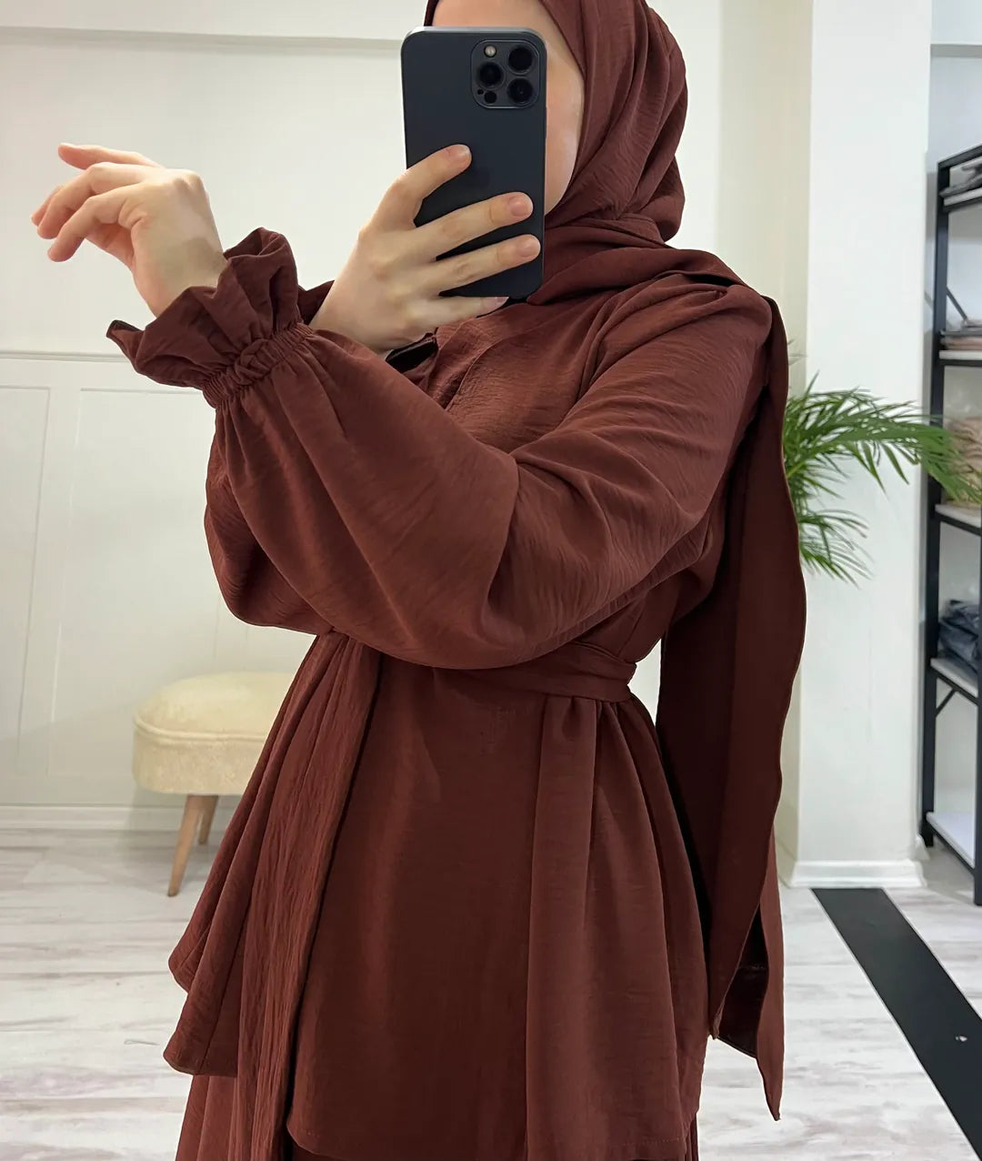 Découvrez la douceur et la fluidité de notre ensemble Mervay, confectionné dans une crêpe Ayrobin importée de haute qualité, à la fois légère et opaque.