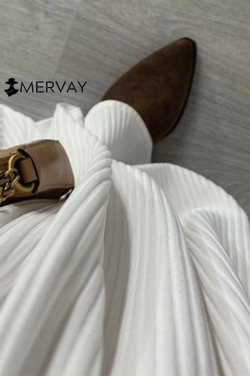 Laissez-vous séduire par la douceur et la légèreté de notre robe blanche plissée MERVAY, symbole d’élégance naturelle et de féminité pudique.